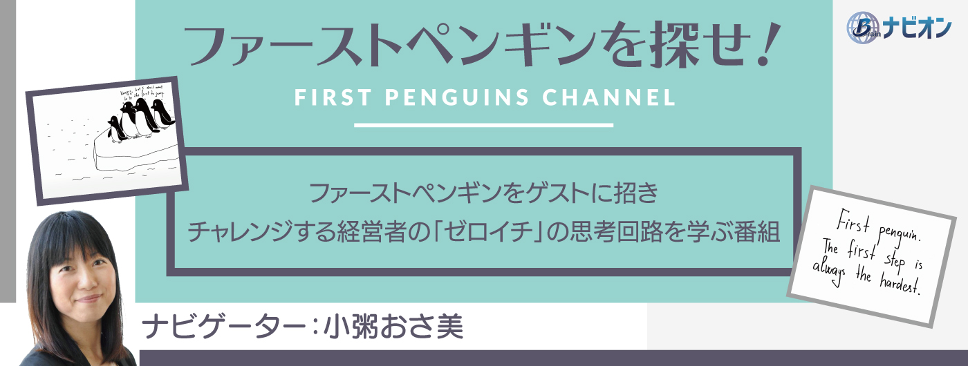 ナビゲーターの小粥おさ美がファーストペンギンをゲストに招き、チャレンジする経営者の「ゼロイチ」の思考回路を学ぶ番組!